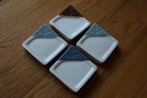 LEHTI -teepussinalunen tai pari on mukavan pieni ja käytännöllinen lahja. Voi käyttää myös tuikkujen alusena. Asettaessasi neljä alusta lehtiosat vastakkain, saat kauniin kuvion tuikkujen keskelle. Juhlakattauksessa voi pitää myös voiannoksen alusena. Valmistus: vitroposliinivalusavesta valaminen, korkeanpolton lasite Värit: lehtiosa: vihreä/sin.raita, poronluu/lumi/vihreä raita, tummanruskea, poronluu, musta pohjaosa: kerman valkoinen kirkas, valkoinen/kidettä Koko: korkeus 0,4 cm pituus 8 cm leveys 8 cm