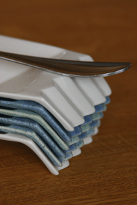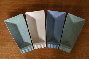Seisovassa pöydässä toimii salaattiottimien ja ruokakauhojen alustana. Voi käyttää myös tarjoiluvatina esim. hillosipuleille, oliiveille, pähkinöille, rusinoille, viipaloiduille kurkuille ja tomaateille. Valmistus: vitroposliinivalusavesta valaminen, korkeanpolton lasite Värit: luonnonvalkoinen, sininen, vihreä, ruskea, musta ja myös kaksivärisenä: kantaosa värillisenä Koko: korkeus 3,5 cm pituus 23 cm leveys 12 cm